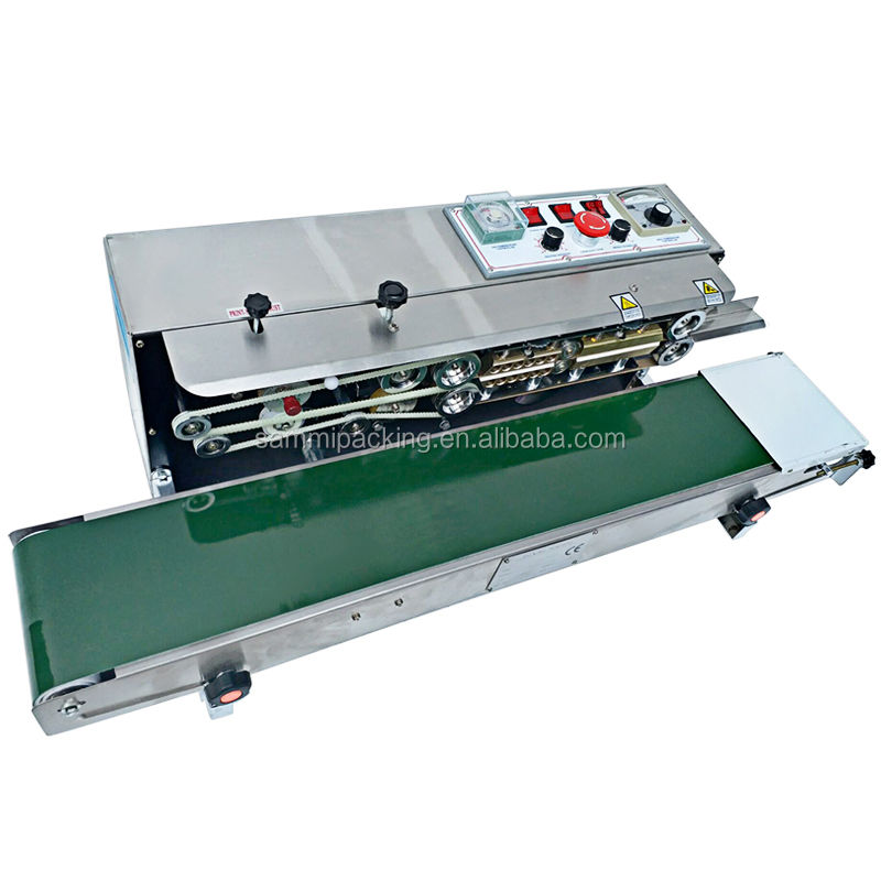 เครื่องซีลสายพานพิมพ์วันที่ FRD-1000 แบบใช้หมึกแข็งเป็นเครื่องรุ่นใหม่ของเครื่องซีลฟิล์มพลาสติกอัตโนมัติ ซึ่งรวมการพิมพ์สี การซีล การส่งผ่านผลิตภัณฑ์อย่างต่อเนื่อง ด้วยรูปแบบที่สะอาดและสว่างบนส่วนซีล เลือกสีได้ พิมพ์ได้ทันทีและแห้งทันที และสะดวกในการเปลี่ยนตัวอักษร