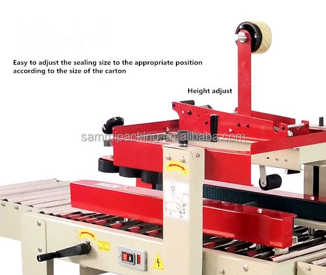 2.ปรับความสูงและความกว้างการปิดด้วยมือตามขนาดของกระดาษกล่อง, แล้ววางกระดาษกล่องบนโต๊ะทํางาน, และกระดาษกล่องจะส่งผ่านและปิดด้วยเทปโดยอัตโนมัติในเวลาเดียวกัน
