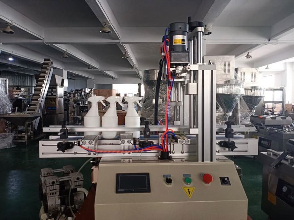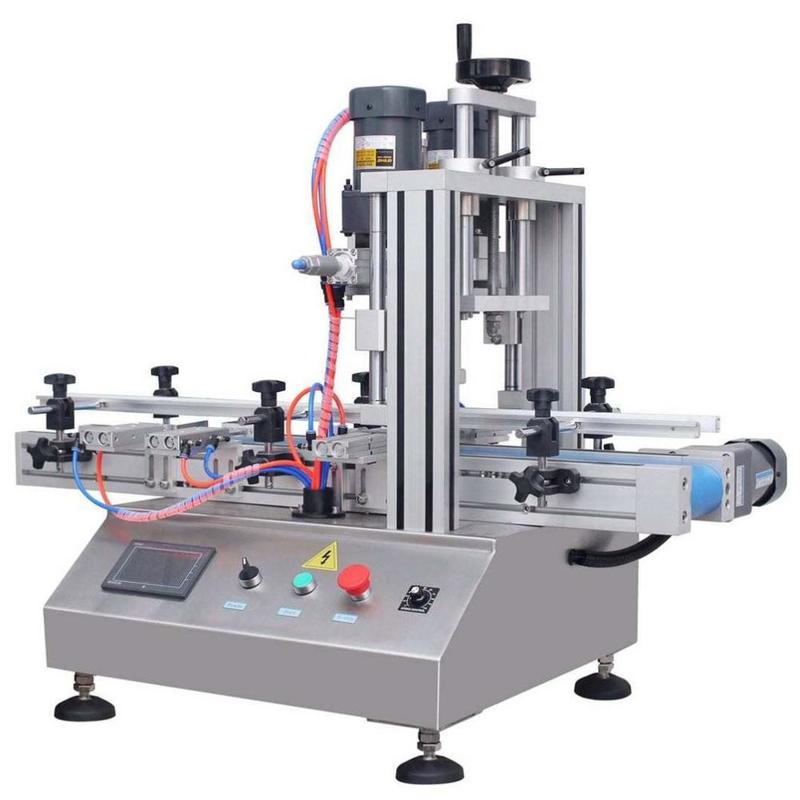 เหมาะสําหรับการสกรูหมวกของรูปแบบต่าง ๆ ของขวดในอุตสาหกรรมอาหาร, ยา, สารเคมีประจําวัน, ยาฆ่าแมลงและเครื่องสําอางฯลฯมอเตอร์ความเร็วที่ปรับได้สี่ตัวของมันถูกใช้ตามลําดับสําหรับการให้อุปกรณ์, การจับกระป๋อง, การส่งและสกรูหมวก. มันมีลักษณะด้วยระดับอัตโนมัติสูง, ความมั่นคงที่โดดเด่น, การปรับง่าย, ไม่จําเป็นต้องอะไหล่สําหรับการเปลี่ยนชนิดของกระป๋องหรือหมวก,ซึ่งสามารถทําได้เพียงด้วยการปรับ.