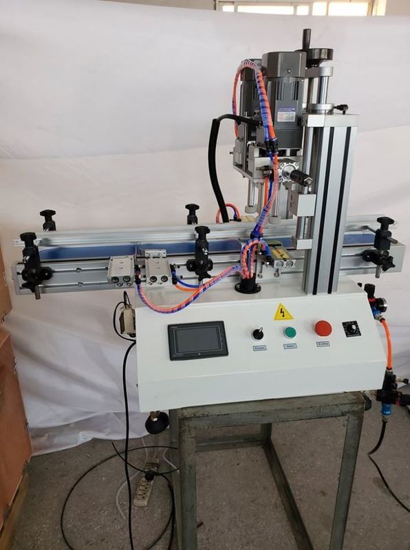 เหมาะสำหรับการขันสกรูฝาขวดรูปทรงต่างๆ ในอุตสาหกรรมอาหาร ยา เคมีภัณฑ์ประจำวัน ยาฆ่าแมลง และเครื่องสำอาง เป็นต้น มอเตอร์ปรับความเร็วได้สี่ตัวใช้สำหรับป้อนฝา หนีบขวด ส่ง และขันสกรูฝาตามลำดับ มีลักษณะเด่นคือระบบอัตโนมัติระดับสูง เสถียรภาพที่โดดเด่น ปรับแต่งง่าย ไม่จำเป็นต้องมีอะไหล่สำหรับการเปลี่ยนชนิดขวดหรือฝา ซึ่งสามารถทำได้โดยการปรับเท่านั้น